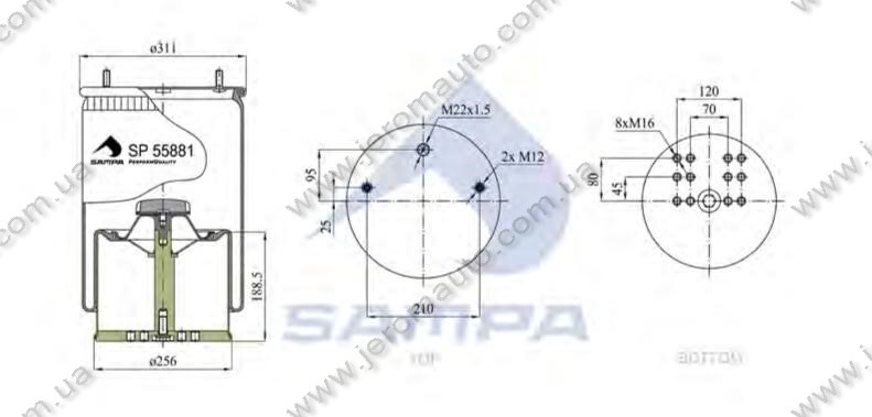Пневморесора зі склянкою в зборі (сталь) BPW 881MB (2шп.M12,1отв.штуц.М22х1.5мм) (d340x470) \0542940611 \ SP 55881-K